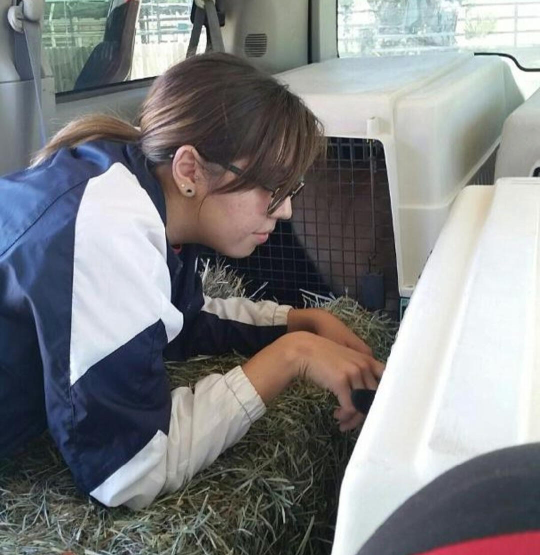 Now a freshman in high school, imagine my surprise walking in and noticing the Future Farmers of America (FFA) small animal enclosure, with those bright golden eyes staring back at me! It's Wilson!! as well as her bestie, Princess! She was being temporarily boarded at said farm over the summer.